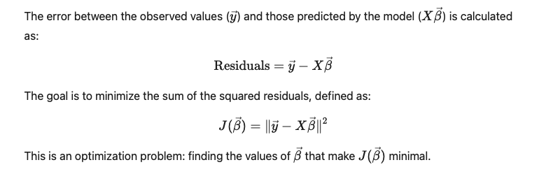 The first step is to define what is called the cost function, which is the sum of the squares of the residuals of all the data in the model, that is: