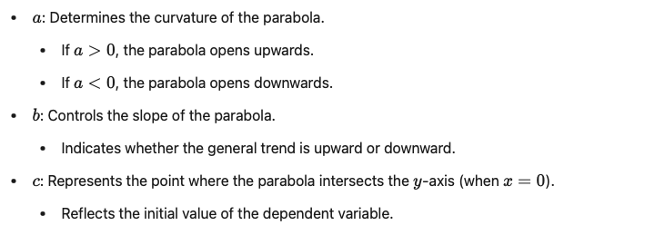 The following equation represents the parabolic equation of a quadratic regression: