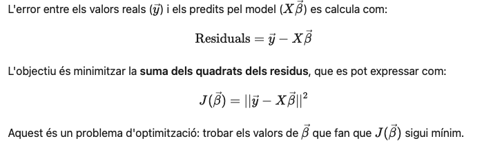 El primer pas és el de definir el que s’anomena la funció de cost, que és la suma dels quadrats dels residus de totes les dades del model, és a dir: